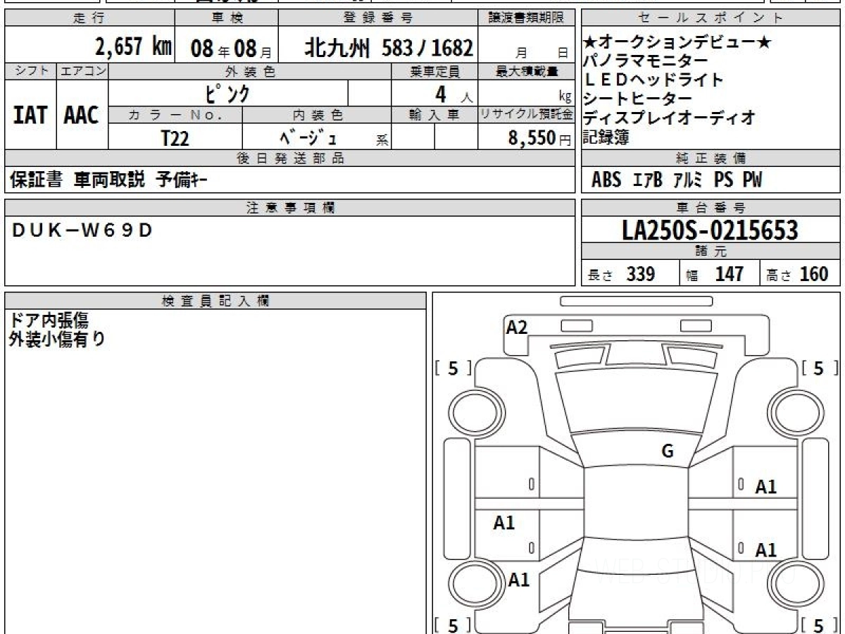 ДАЙХАТСУ КАСТ LA250S 2021 пробег 3000 км лот 3778, стоимость продавца 405 450 ₽.